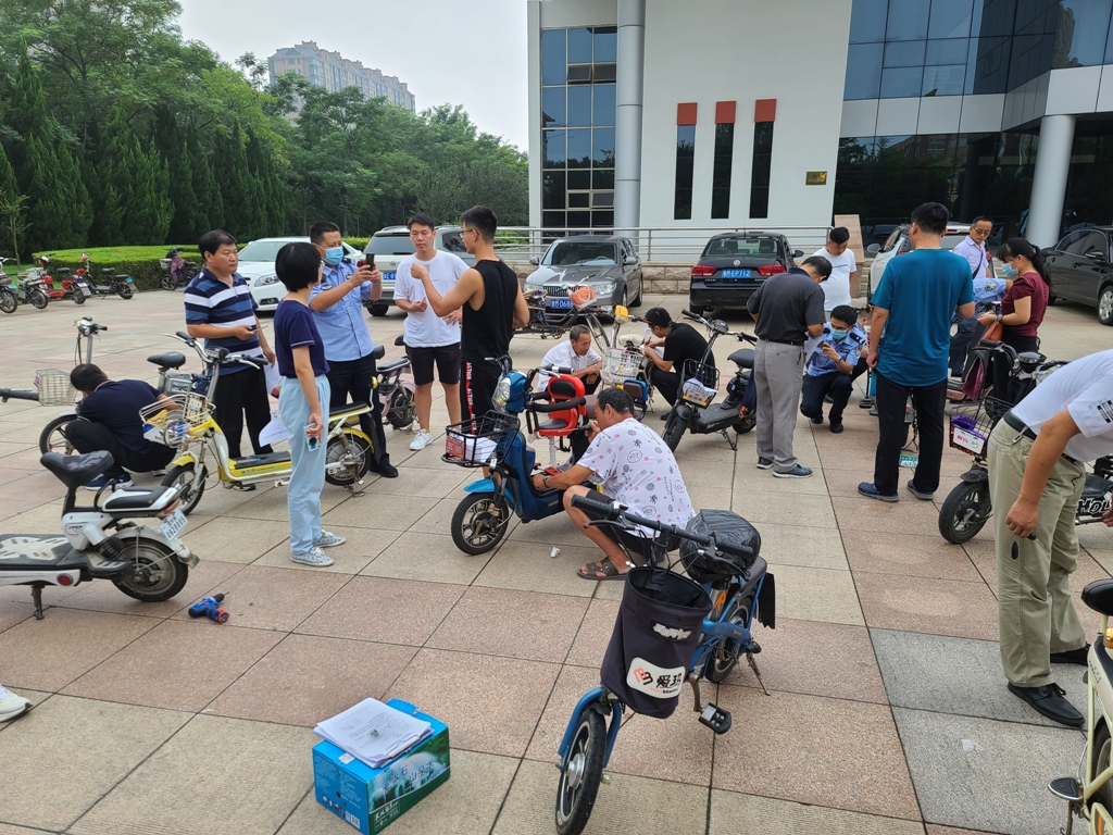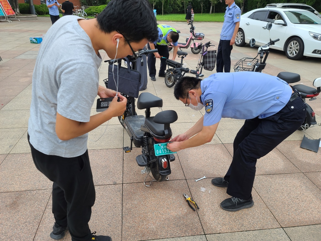 为进一步发挥基层党组织服务群众的作用,开学前夕,保卫处党支部根据在校园走访中了解到的信息,8月19日,联合滨州市经技术开发区交警大队在我校学苑会堂停车场临时设立一处挂牌点,为我校部分还未办理两轮电动车挂牌业务的教职工提供上门服务。
