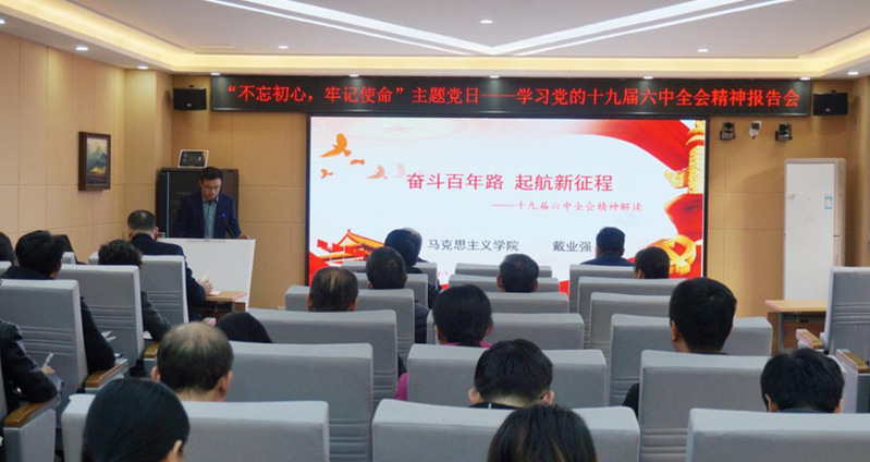 为深入推进学习党的十九届六中全会精神,12月14日下午,招生就业处等六个机关党支部联合举办“不忘初心、牢记使命”主题党日活动,邀请学校理论宣讲团成员、马克思主义学院副教授戴业强博士做学习党的十九届六中全会精神辅导报告。党委委员、副校长郭新伟以普通党员身份参加学习。