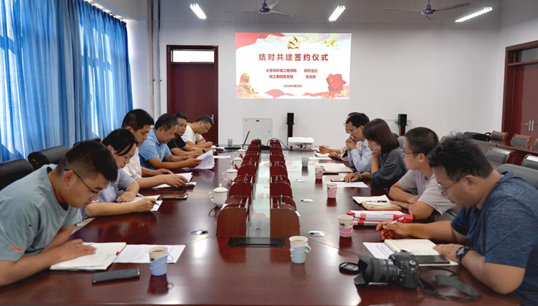为迎接学校第四次党代会的胜利召开,加强机关职能部门和二级学院的联系,强化执行力提升,把服务切实落到实处,9月28日下午,研究生处党支部与生物与环境工程学院教工第四党支部在11号楼研究生处会议室举行结对共建签约仪式。生物与环境工程学院党总支书记左之涛、副书记时芸、教工第四党支部书记任加云出席活动,研究生处党支部书记闫永利主持活动。