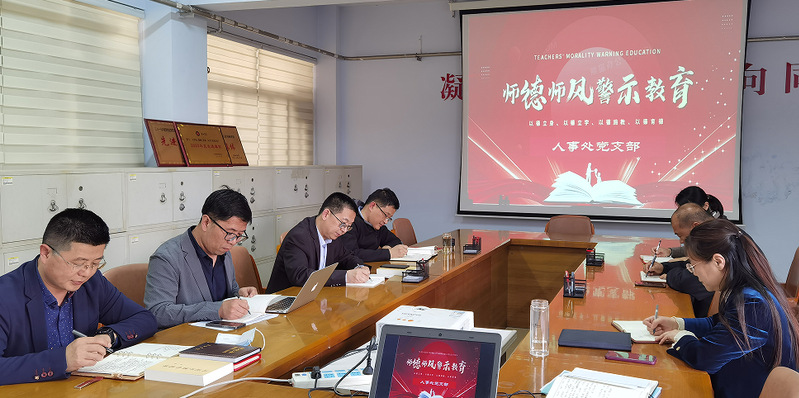 为做好教育警示和预警预防工作,进一步规范教师职业行为,全面推进师德师风建设,打造风清气正的教育生态,4月12日,按照学校和机关党总支的要求,人事处党支部开展了师德师风警示教育专题活动,党支部委员李刚主持活动。