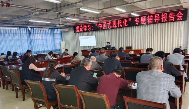 为贯彻落实党的二十大精神,深入推进学习贯彻习近平新时代中国特色社会主义思想主题教育,图书馆党支部于5月9日下午在会议室为全体党员和教职工举办专题辅导报告会,邀请校理论宣讲团成员、马克思主义学院戴业强副教授作了题为《以中国式现代化全面推进中华民族伟大复兴》的辅导报告。