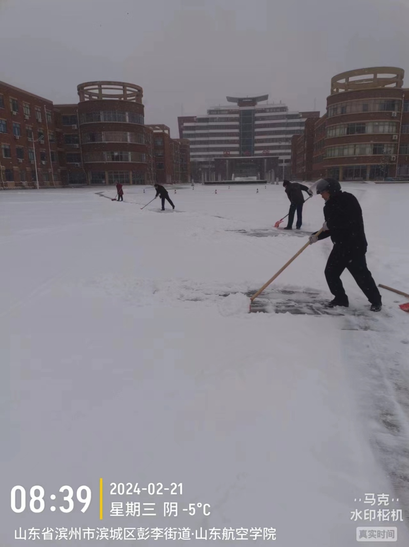 同时,按照滨州市城区清雪除冰工作指挥部办公室《滨州市城区清雪除冰应急预案(试行)》《关于做好市城区清雪除冰工作的通知》要求,后勤管理处迅速组织人员圆满完成了学校南门渤海十二路至渤海十三路段相关区域积雪清扫工作。