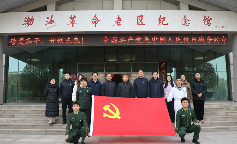 在渤海革命老区纪念园负责同志的陪同下,全体党员怀着对革命先辈的崇高敬意,依次走进“星火初燃”“烽火燎原”“烈火铁流”三个主题展厅。泛黄的历史照片、斑驳的珍贵文物、撼人心魄的英雄事迹,全方位、多角度回溯了渤海革命老区在中国共产党领导下,从星星之火发展为燎原之势的壮阔革命征程。师生们驻足凝视、凝神感悟,在沉浸式体验中穿梭峥嵘岁月,深刻体会到红色政权、新中国的来之不易。